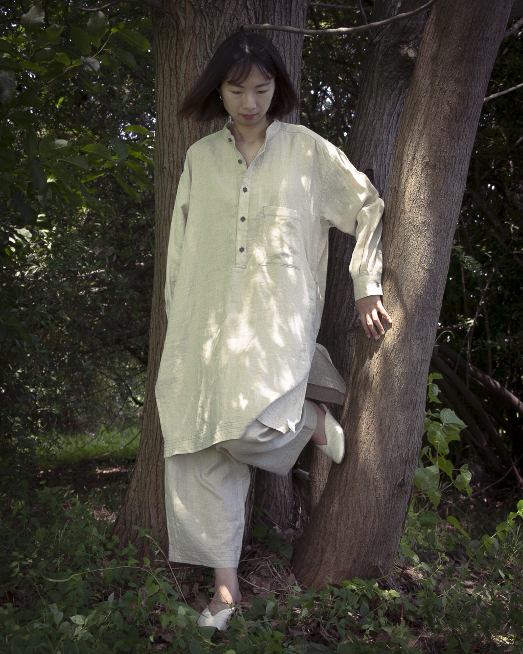 Designed with a larger pattern, the wide design maximizes the air flow within the pants, enhancing the natural cooling property of linen. While the “Linen Long Pants” is designed to be a set with the “Linen Long Shirt”, it is not limited to one coordinate.