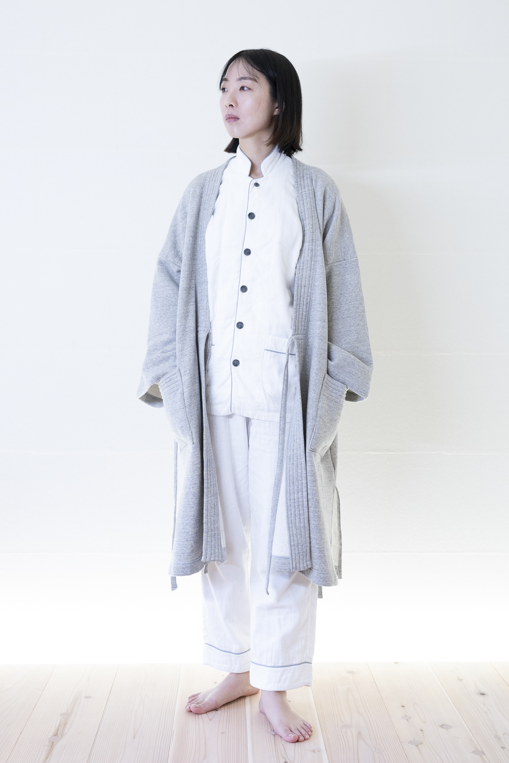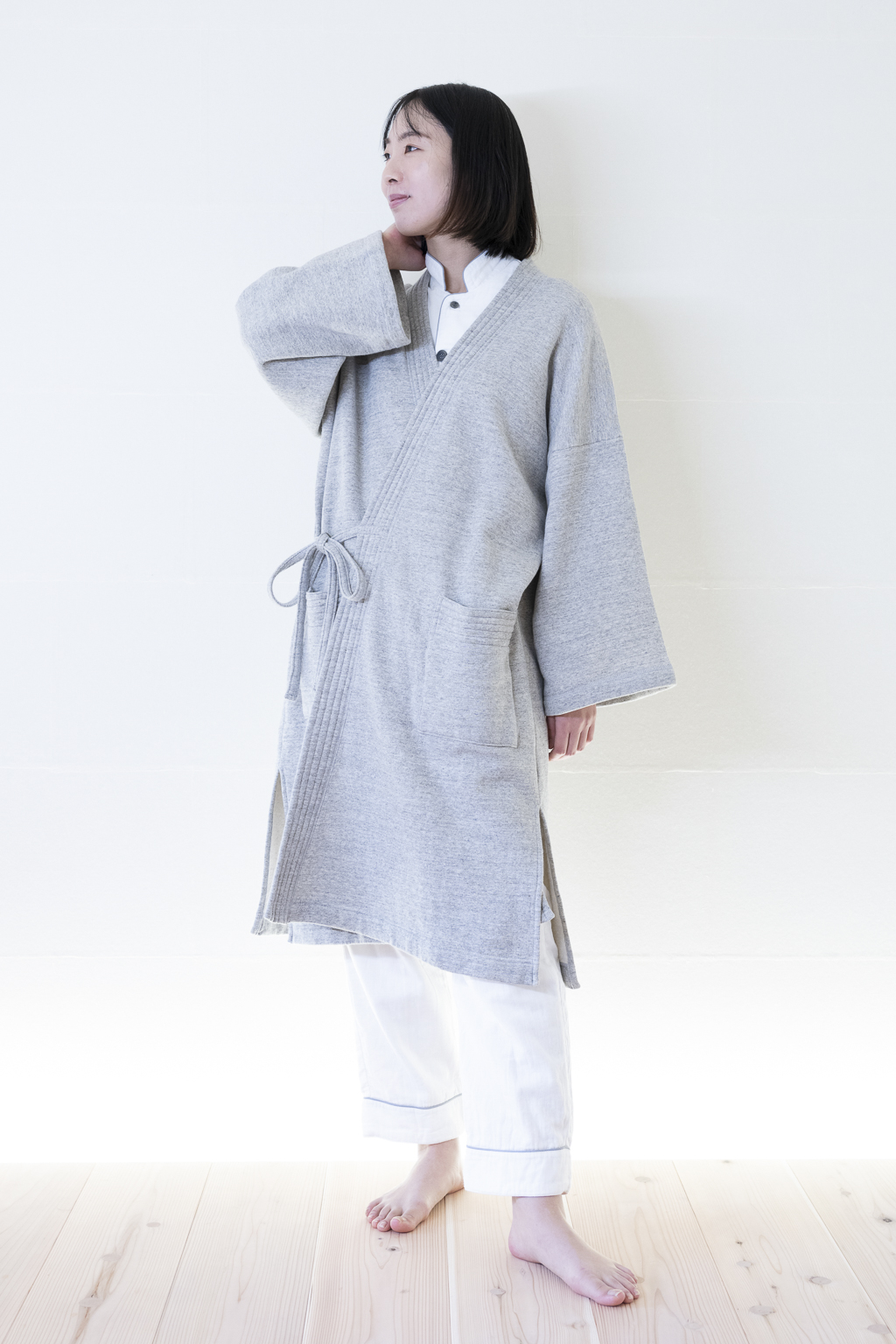 Basing the design on the traditional Japanese SAMUE robe, this robe is designed to make freshen up your skin after a bath. Like a half coat or a long cardigan, this robe can be worn on a normal daily basis.