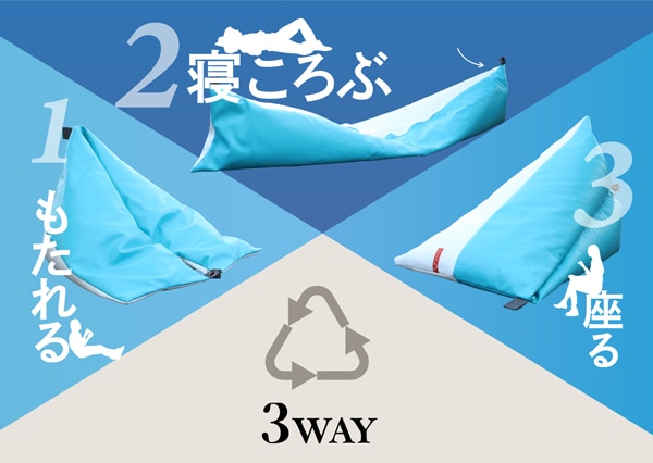 “もたれる”、“寝ころぶ”、“座る”——シーンに合わせて自在に変化する、3Way仕様のビーズクッション。どんな姿勢でもしっかり体にフィットし、くつろぎの時間を心地よくサポートします。
