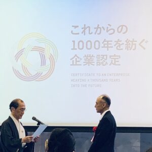 今日は第4回目となる京都市の「これからの1000年を紡ぐ企業認定」授与式に参加。