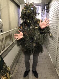 大阪某所にてスナイパー御用達の新手のギリースーツ着用57才のショットを自ら振り返る。