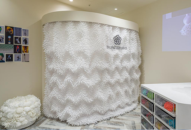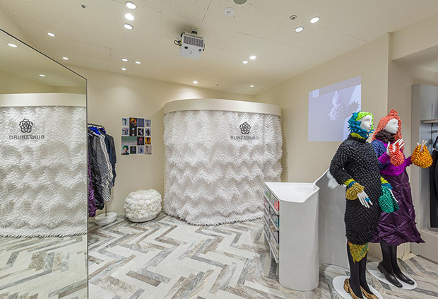 2019年にカスタムオーダーいただいた京都の片山文三郎商店様より、絞りカーテンの縫製をご依頼いただきました。今回の絞りカーテンは、2022年8月31日にリニューアルした神戸阪急の直営店「BUNZABURO」ストアのフィッティングルーム(試着室)のカーテンとして設置されています。大東寝具では、カスタムオーダー品や大型生地の特殊縫製が可能です。