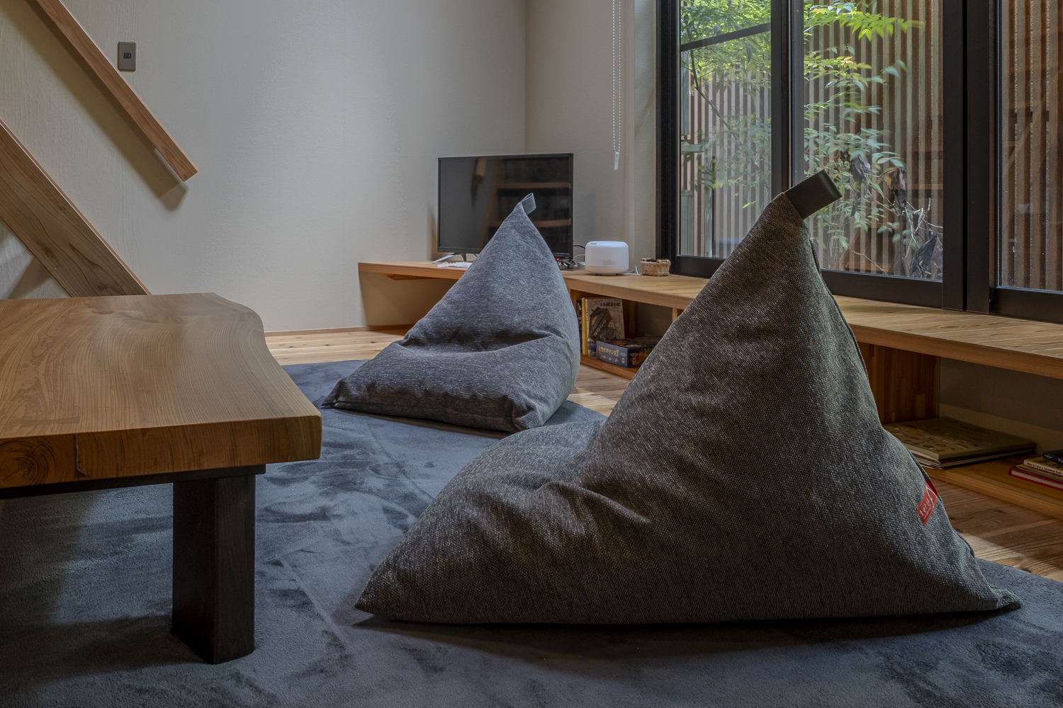 京都・西陣の歴史ある街並みに佇む、築100年の京町家を最新設備のゲストハウスへと改装された〈ORI stay & living〉様に、当社のビーズクッション「tetra(テトラ)」と、クッションをご採用いただきました。1組限定の貸切スタイルで、広々としたリビング空間を独占しながら「住むように泊まる」贅沢な時間をお過ごしいただけます。観光地の喧騒から少し離れた、静かで穏やかな京都の暮らしを体験できる空間に、さらに深いくつろぎを添えるアイテムとしてお選びいただきました。