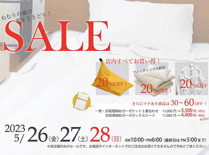 ねむりの蔵 京都伏見本店・四条烏丸店 Early Summerセール