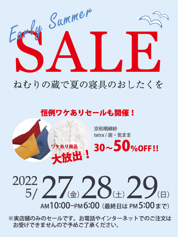 ねむりの蔵 京都伏見本店・四条烏丸店 Early Summerセール