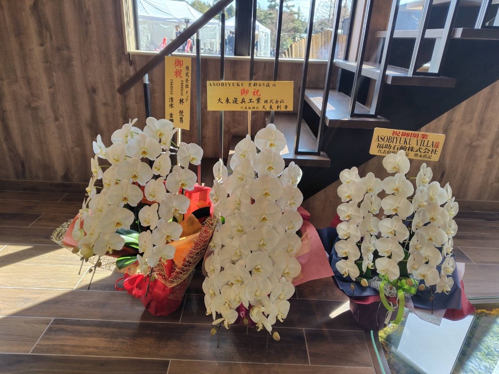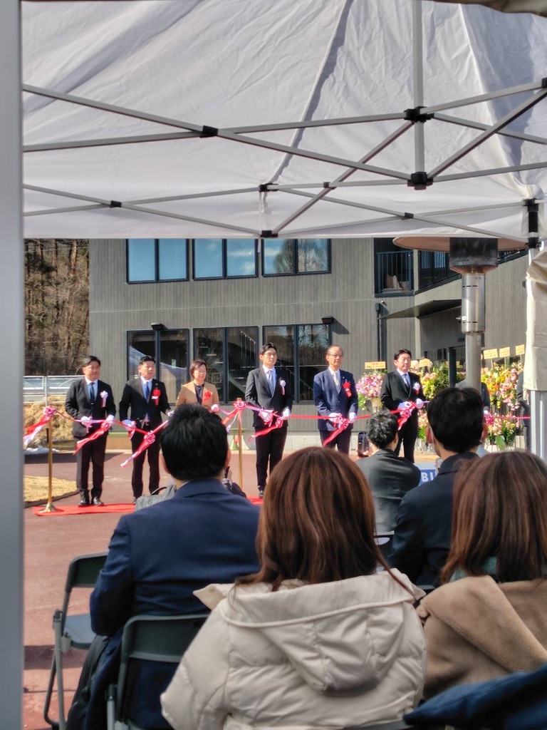 セレモニーではテープカットが行われ、祝花が並ぶ。