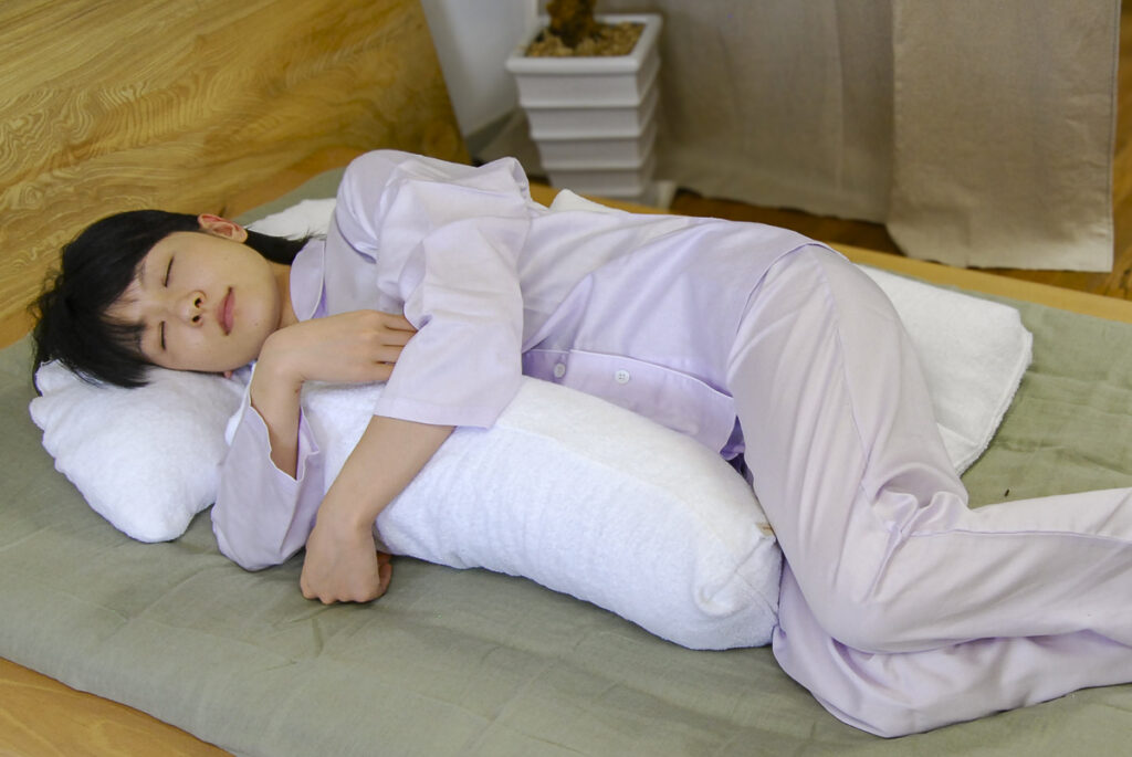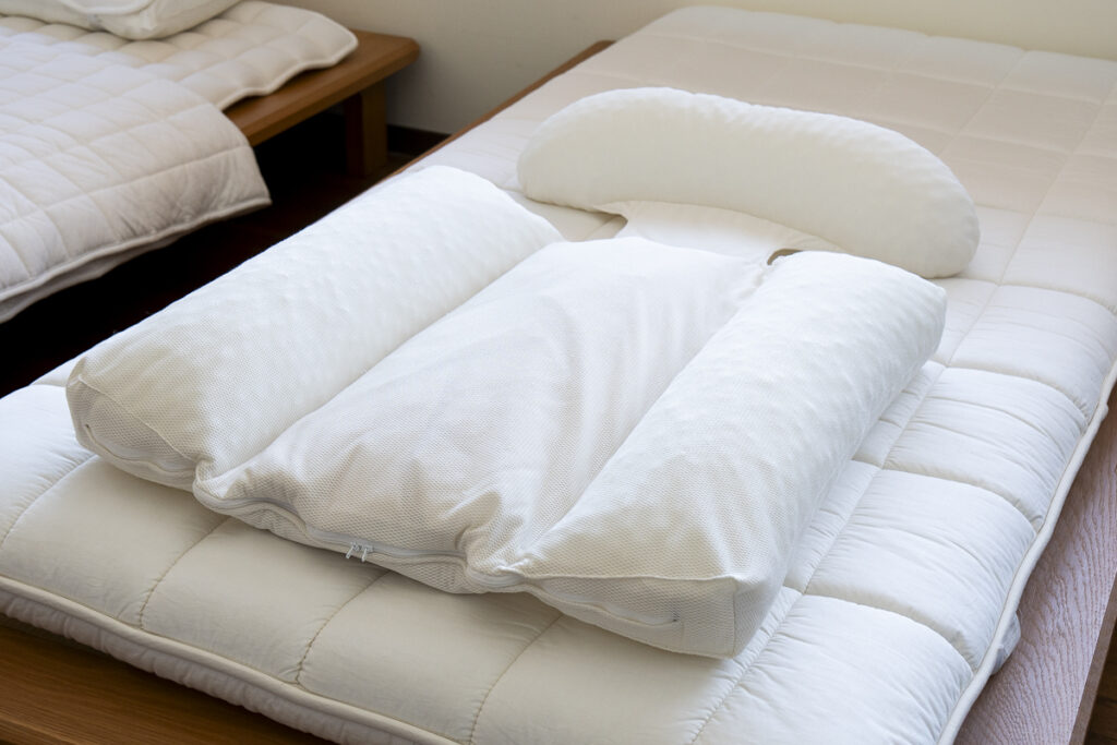 長時間、快適に横臥寝を保つことのできる寝具です。いびきでお困りの方、睡眠時無呼吸症候群の対策におすすめしています。