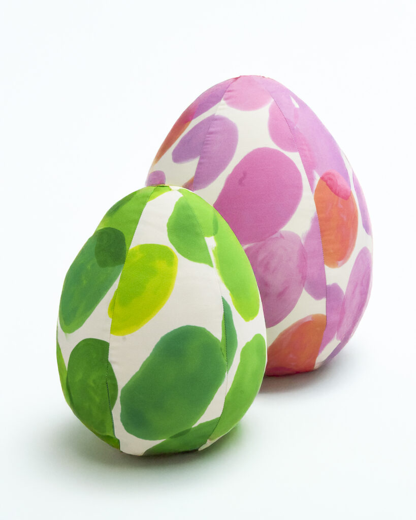 たまご型クッションはファーマフーズ様の原案ですが、 なんと社員食堂にある本物のゆでたまごをじっと観察し、 「たまごらしいたまご」を厳選して見本にされたそうです。 そのエピソードをうかがって、私たちも「限りなく本物のたまごに近い形」を目指し、製作を進めました。 ほんの数ミリのズレがたまごのキレイなフォルムに影響してしまうため、 縫製精度が非常に求められる難しい製作でしたが、 チームワークで一つひとつ丁寧に仕上げていきました。 中のヌード部分も、サイズごとに中材を変えて設計。 綿を詰めたり、発泡ビーズを充填したりと最適な“ふんわり感”を目指して調整を重ねました。
