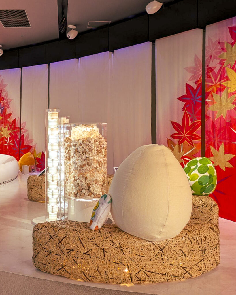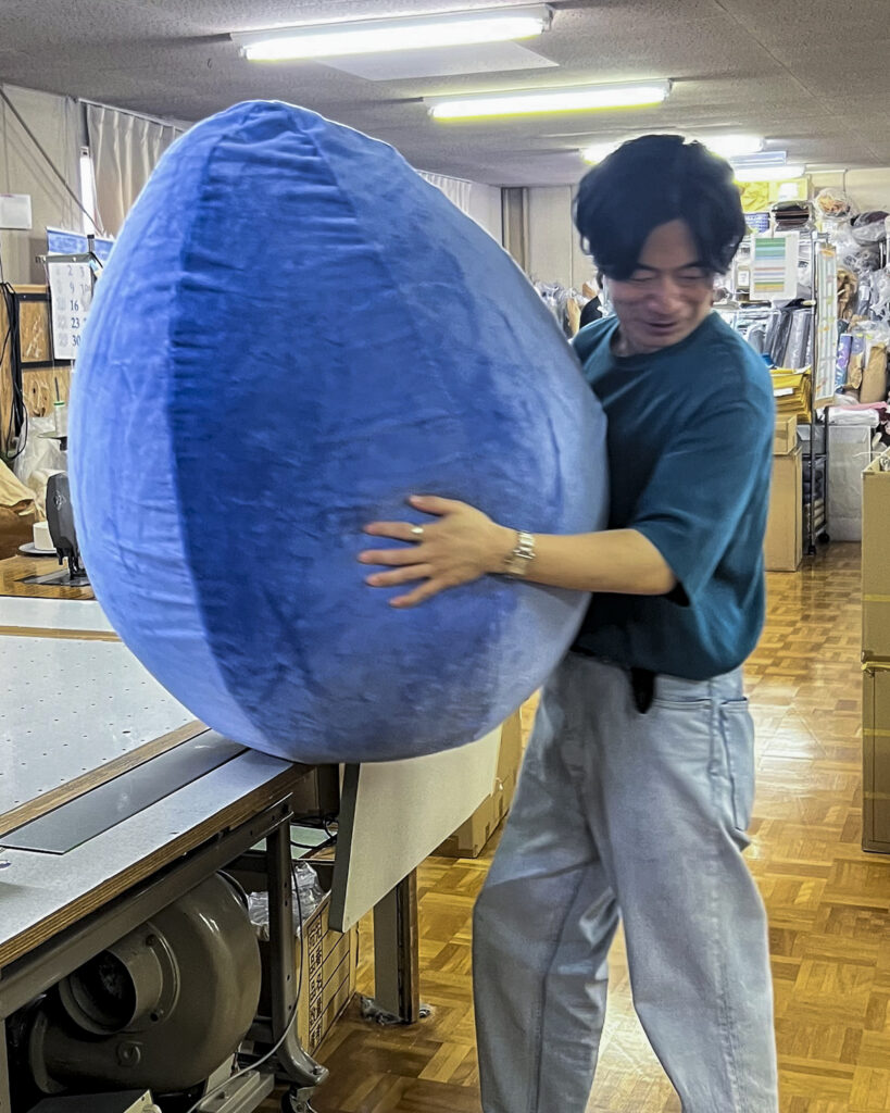 こんにちは、製造部の樹下です。大盛況のうちに幕を閉じた2025年大阪・関西万博。 その「大阪ヘルスケアパビリオン」に、私たち大東寝具工業が製作した たまご型クッションが設置されました。 このたび、ファーマーフーズ様よりご依頼をいただき、 試作を何度も重ねながら、形状・触り心地・素材の風合いまで細部にこだわって完成させました。 大・小合わせて3サイズ、ヌードクッションやカバーを納品させていただきました。