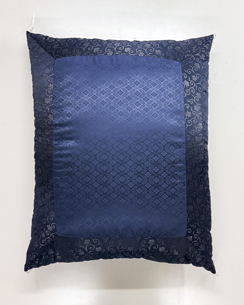 先日、鏡仕立ての大座布団のご注文をいただきました。鏡仕立ての大座布団は、お客様からの支給生地で製作するので、生地の組み合わせ方や仕上げ方など、毎回仕様が違います。今回は、中綴じは無しで、四角に房をつけた仕上がりになっています。