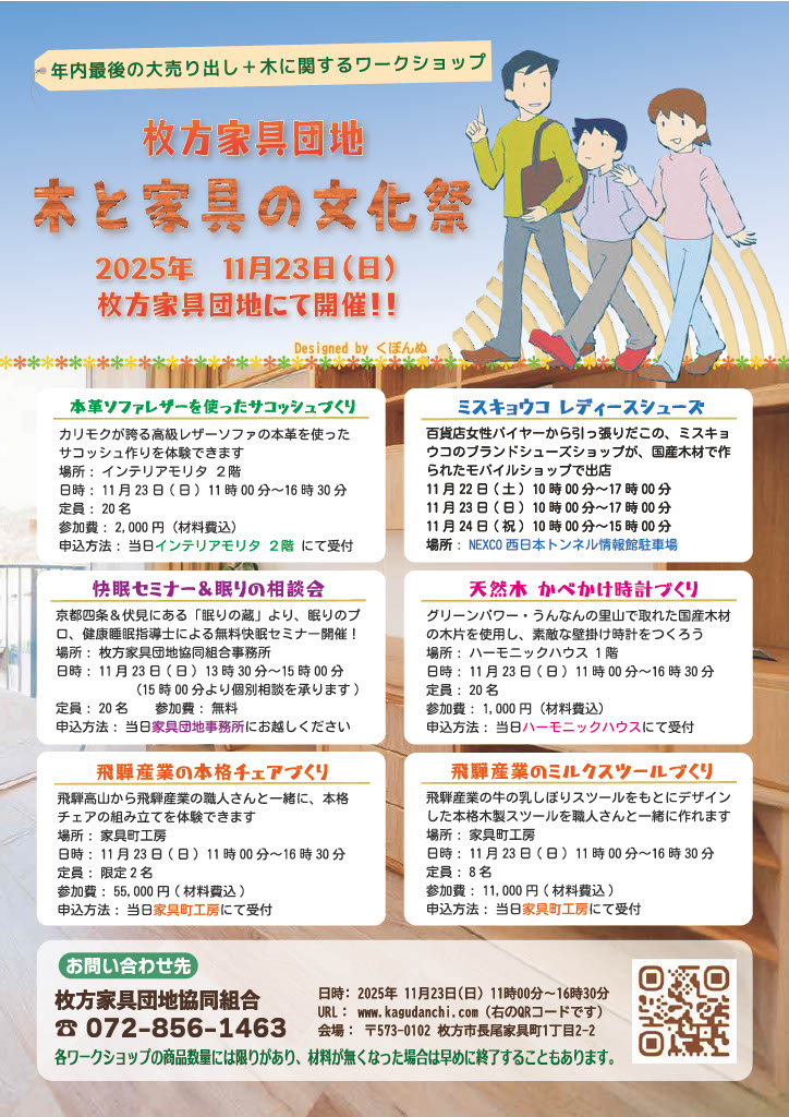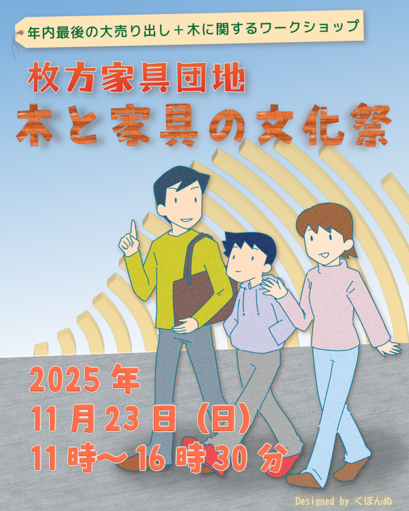 2025年11月23日(土・祝)、大阪・枚方家具団地で開催される「木と家具の文化祭」にて、快眠セミナー&ねむりの相談会を実施します。