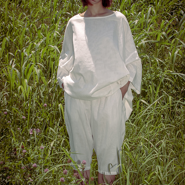 大きすぎるくらいのゆったりとしたシルエットは、何も履いてないかと錯覚するくらい軽く、優しい肌触り。