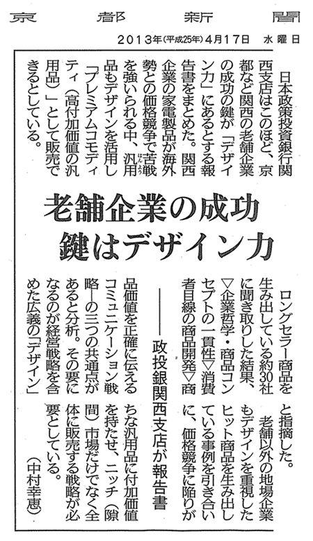 また、このレポートに関する記事が2013年4月17日の京都新聞朝刊に掲載されました。