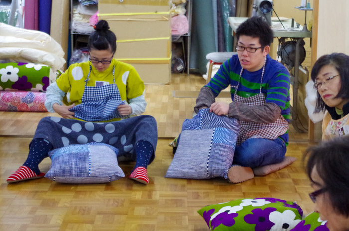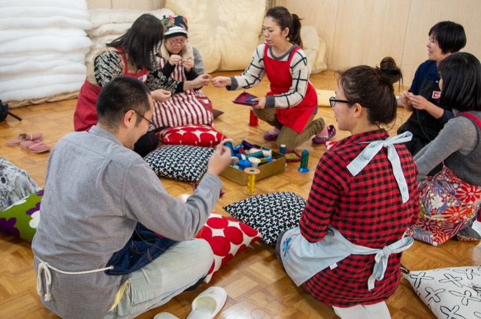 2015年2月21日(土)2月28日(土)3月7日(土)⼤東寝具⼯業「ねむりの蔵」リニューアルオープン1周年記念特別企画として、「おざぶとんをつくろう」京ざぶとん職⼈とつくる、おざぶとんワークショップを実施いたしました。