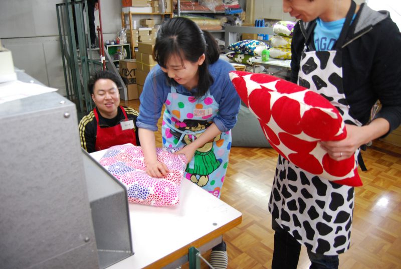 大正14年の創業から培われた寝具製造技術を継承した製造部スタッフが、京ざぶとんの制作をサポートしますので、初心者の方でもお気軽にご参加下さい。