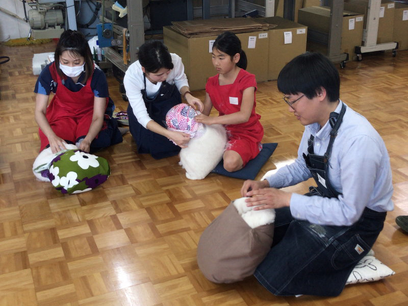 大正14年の創業から培われた寝具製造技術を継承した製造部スタッフが、参加者の制作を指導・サポートしますので、初心者の方でもお気軽にご参加下さい。