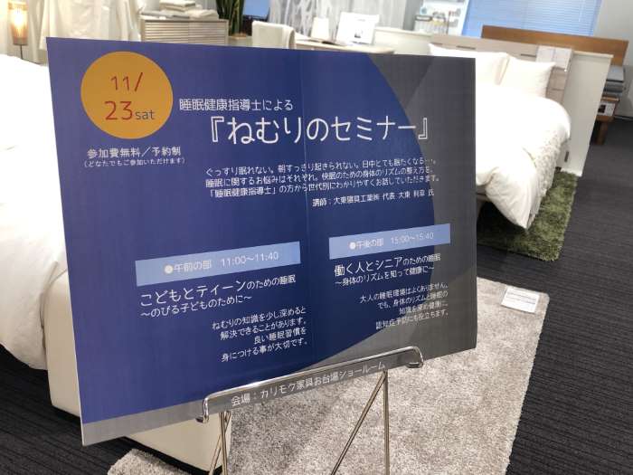 2019年11月23日(土)カリモク家具お台場ショールーム様からのご依頼で「睡眠ワークショップ」を実施いたしました。