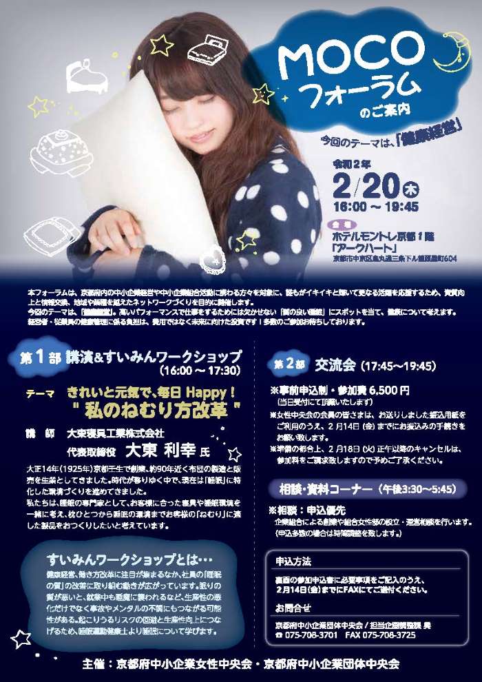 2020年2月15日(水)京都府中小企業女性中央会・京都府中小企業団体中央会様からのご依頼で「睡眠ワークショップ」を実施いたしました。