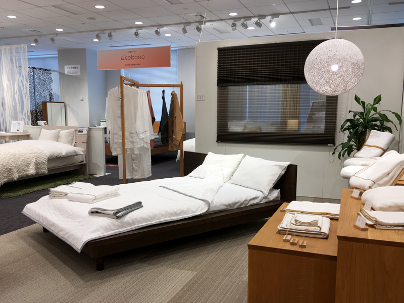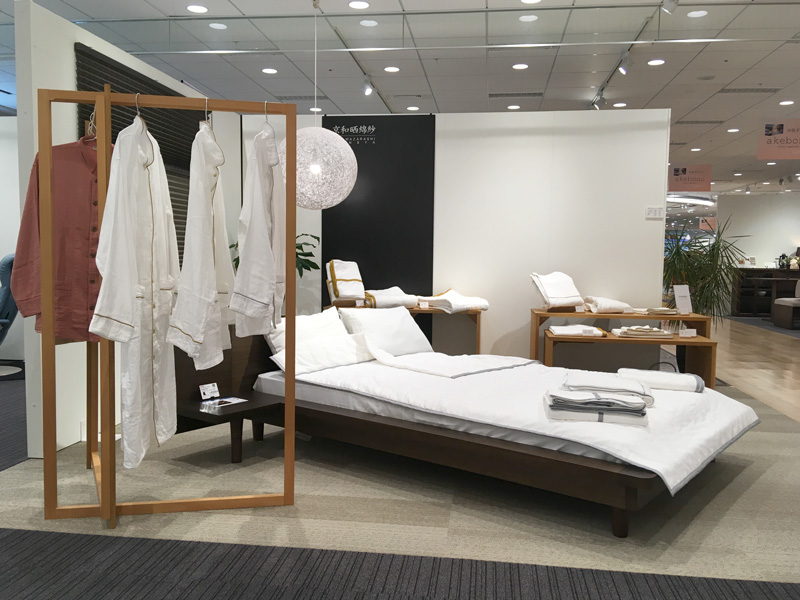 2019年7月から1年間の期間限定で展開しておりました、カリモク家具お台場ショールーム内の快眠ギャラリー「akebono」(京和晒綿紗シリーズを展開)ですが、好評につき、2020年12月31日(木)まで期間延長となりました。
