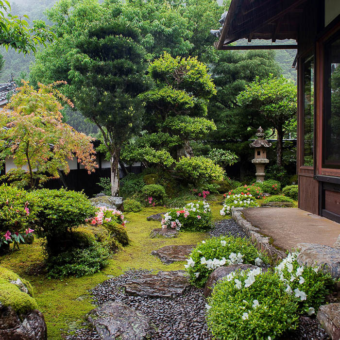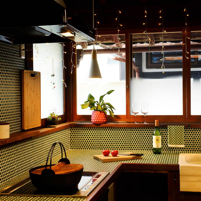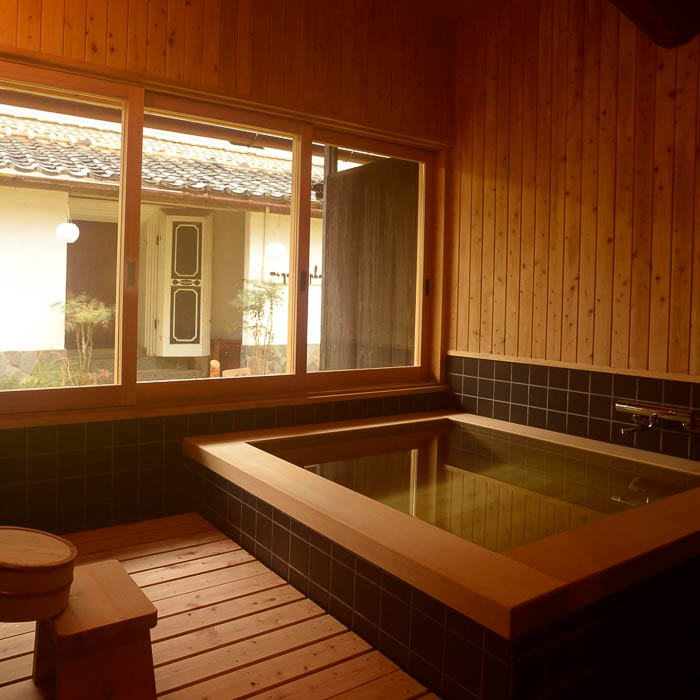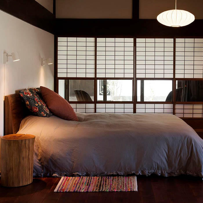 四季折々の豊かな表情を魅せる日本の原風景と、自然が残る集落に佇む趣のある建物に一歩入ると、 そこには、思わず懐かしさが込み上げる空間が広がります。 建物の梁や桁といった構造材やレトロな建具は、暮らしに寄り添ってきた矜持を醸し出し、ヨーロッパから集められたデザイン性に富む調度品と見事に調和しています。 また、ウチとソトの境界線には、奥の山を借景に苔の緑が映える手入れされた庭と、縁側のあるお座敷、そして、堀コタツのある和室の居間と長期間滞在したくなる、くつろぎと安らぎに満ちたスペースが続きます。