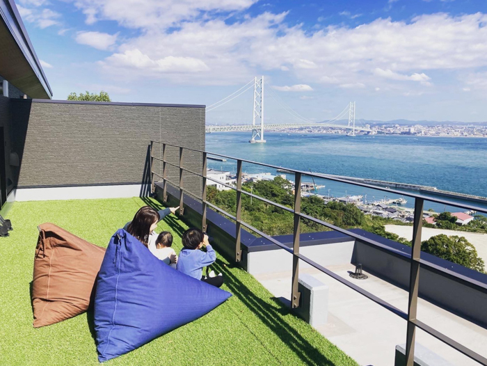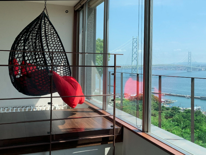明石海峡大橋を望む淡路島の北端、岩屋の自然豊かな森にいただかれるように佇む「海風テラス」は 自分だけのプライベート空間で最高のくつろぎタイムを満喫できる貸別荘です。