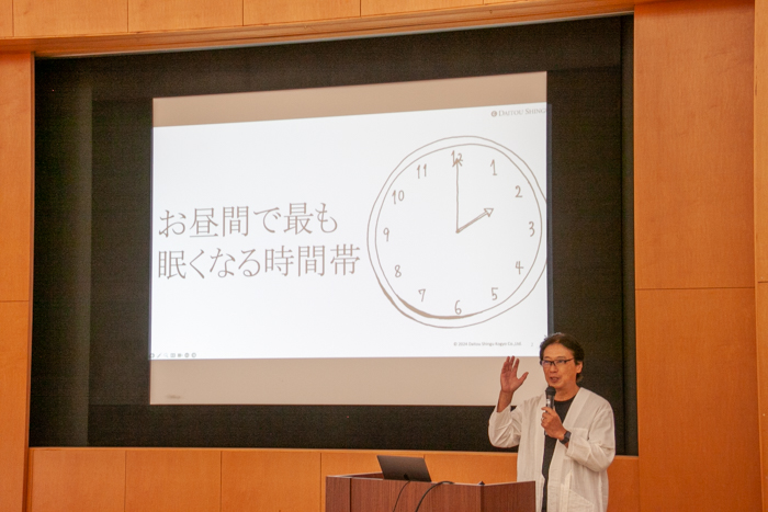 2024年9月11日(水)東山区役所様からのご依頼で「睡眠ワークショップ」を実施いたしました。これからも睡眠ワークショップを通じて、夜眠るための一日の過ごし方など睡眠の知識を広く啓蒙する活動を継続してまいります。