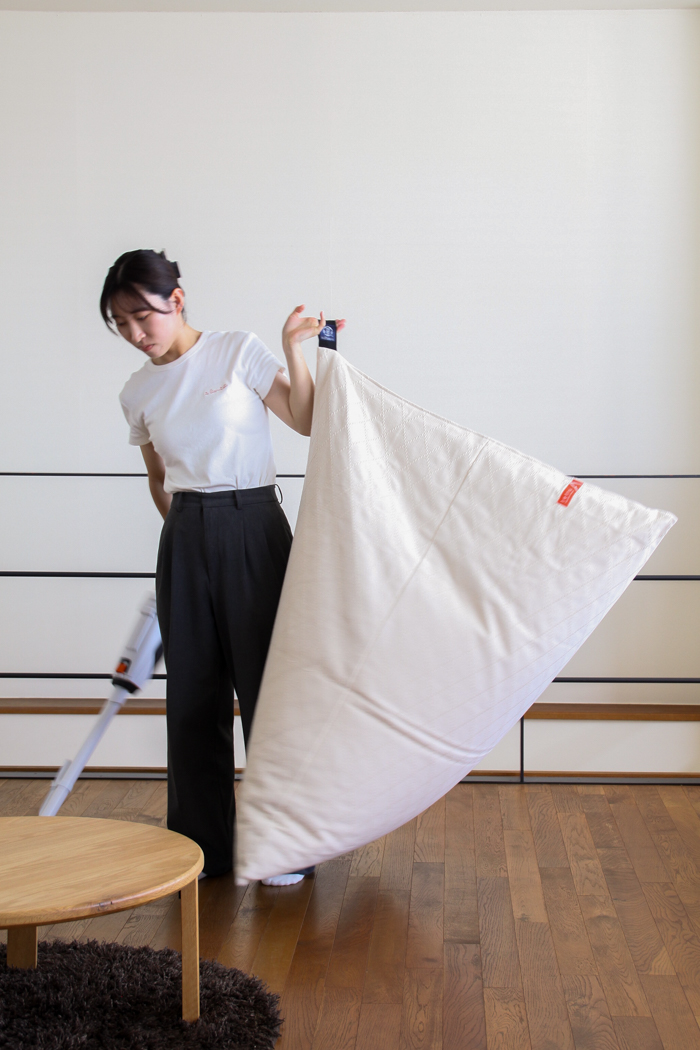 TOSO株式会社が発行するインテリアマガジン「ラ・フィーネストラ Vol.37」にて、ヌックに置くくつろぎクッションとして、tetra8号帆布(レギュラーサイズ)をご紹介いただきました。