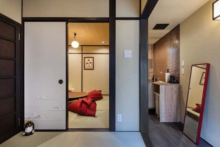 明月は、京都で最も名高いユネスコ世界遺産の一つ、西本願寺に近い 静かな住宅街に位置する居心地のよいゲストハウスです。 JR丹波口駅と阪急大宮駅が徒歩圏内にあり、観光地へのアクセスも便利です。 和のしつらえでありながら、長期滞在にも適した快適な設備が用意され、 リビングルームの和室では、ビーズクッション座・気ままに身体を預けておくつろぎいただけます。 ご家族やグループで、京都に暮らすように滞在できるご宿泊施設です。