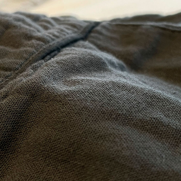 京和晒綿紗ガーゼパジャマ(草木染め-すみくろ)を購入して、約2ヶ月となりました。購入時のガーゼのシャリ感はほとんど無くなり…ずいぶん柔らかくなってきました。