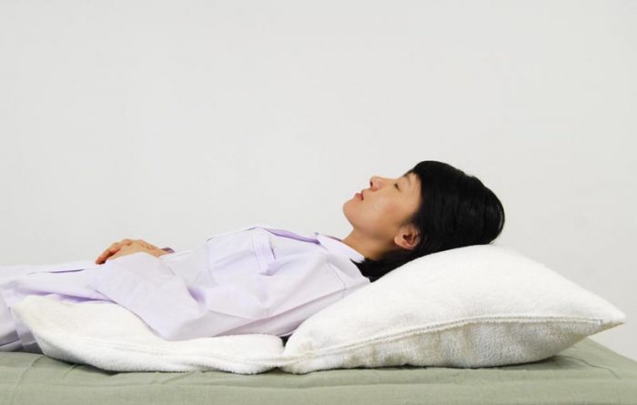 就寝中の胃やのどの不快感を緩和する「傾斜寝姿勢サポート枕」、