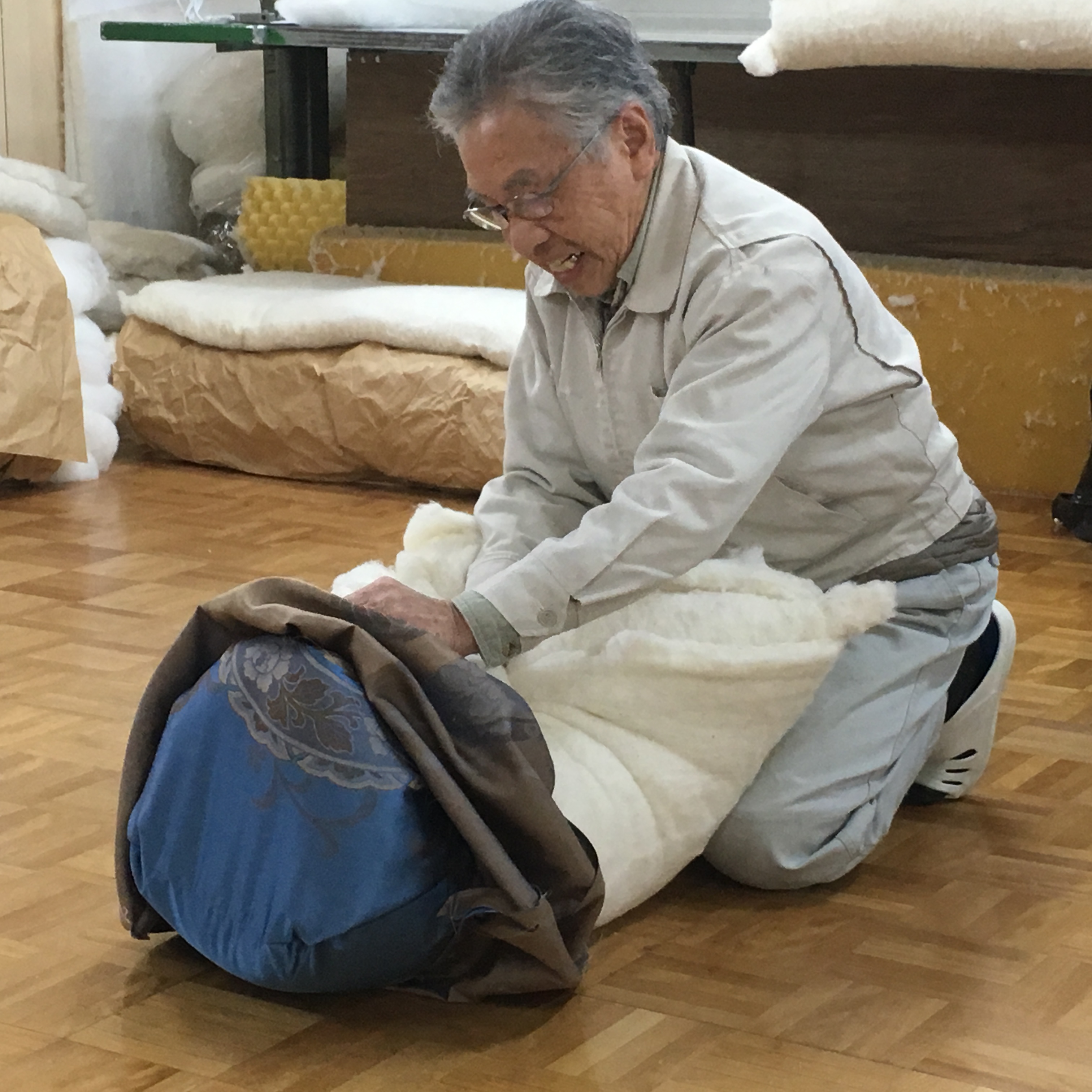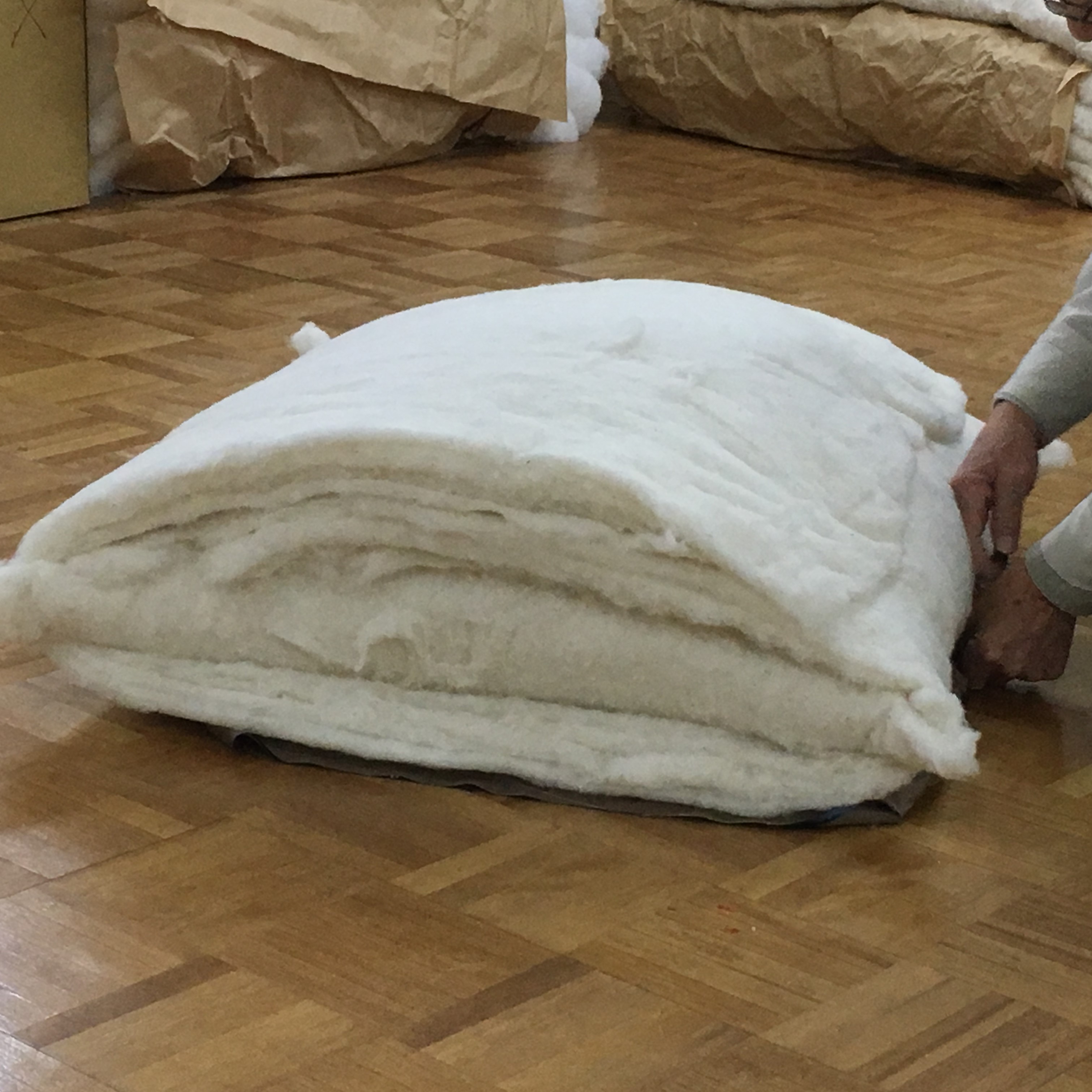 側生地に詰める作業は、機械ですることも多いですが、手作業でやっていただきました。