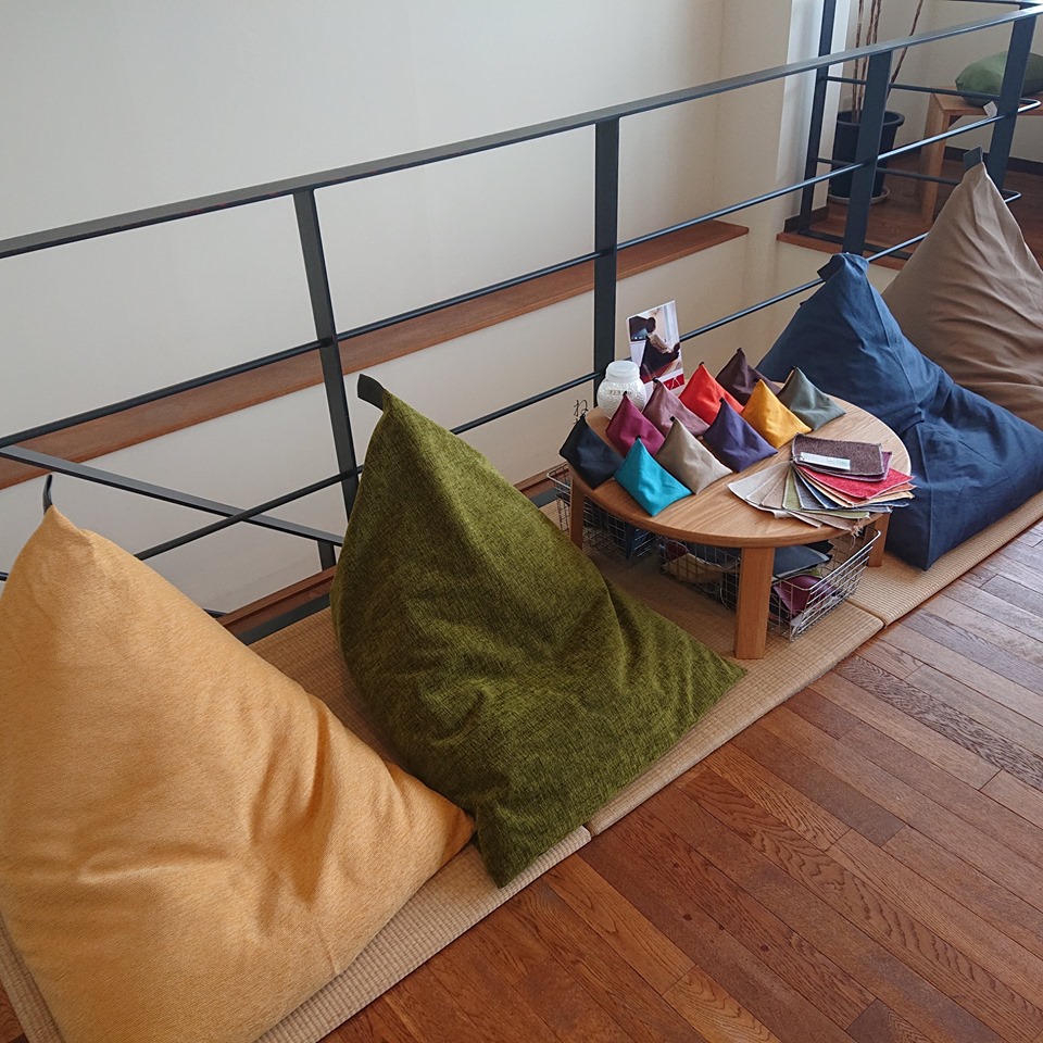 ねむりの蔵では「ビーズクッション座椅子 tetra(テトラ)」や「ガーゼ製品 京和晒綿紗シリーズ」を実際に体感していただいたり、枕や敷布団のフィッティングをしてお客様にピッタリの寝具を見つけていただくことができるショールーム兼寝具体感スペースです。