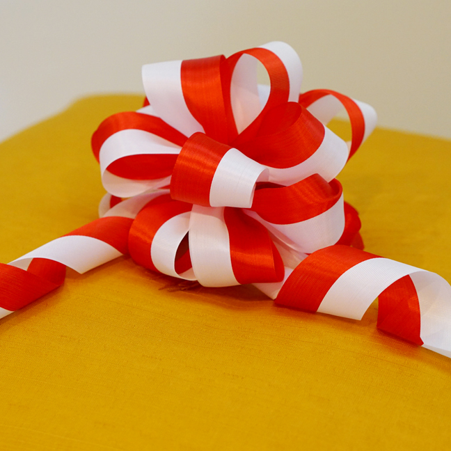 ねむりの蔵ではご希望のお客様に紅白のリボンフラワーをお付けしてお送りさせていただきます。