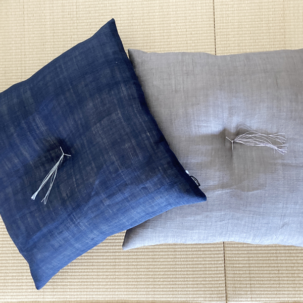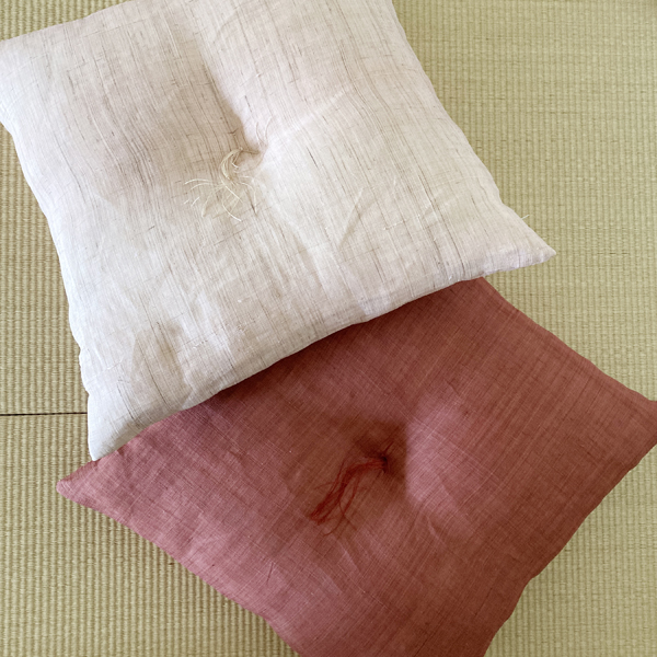 生平(きびら)麻という生地で、45cm角の小座布団をつくりました。