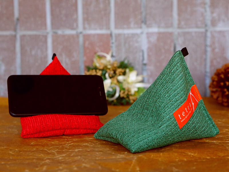 今年はtetraのレギュラーサイズ、ビッグサイズをお買上げの方にちいさなtetra型のスマートフォンスタンドをプレゼント。