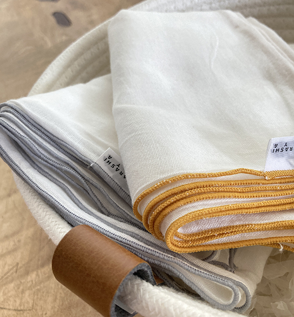 洗うほどにやわらかくなる和晒ガーゼを2枚重ねて手ぬぐいサイズにしたシンプルなアイテム。