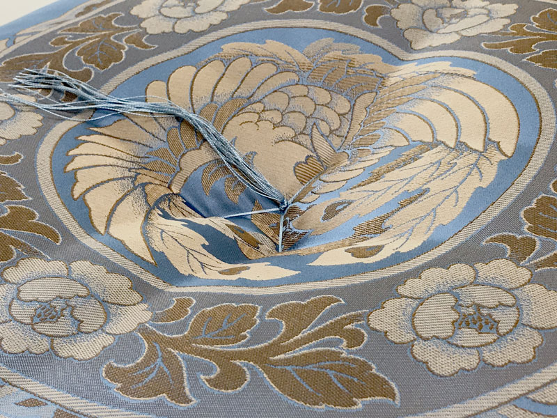 今回は正絹(しょうけん)シルク100%の生地で昔からあるお座布団です。サイズは65x69s㎝です。