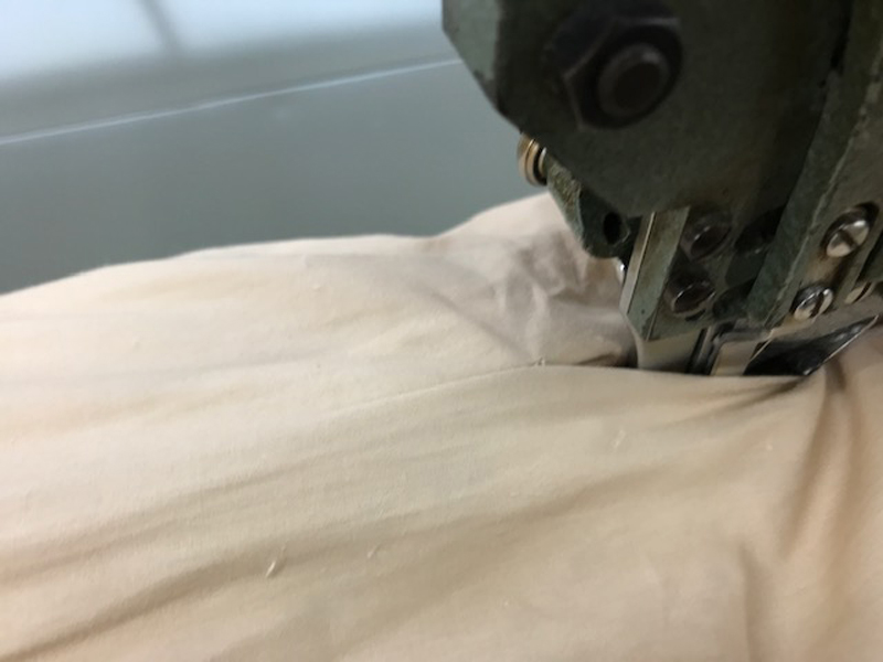 横幅が2.5mのとても大きい特殊ミシンでくけていています。