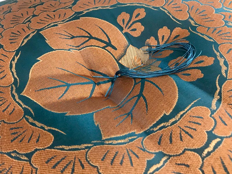 今回は以前ご紹介したシルク100%、正絹(しょうけん)生地のお座布団の絵柄が違うものです。