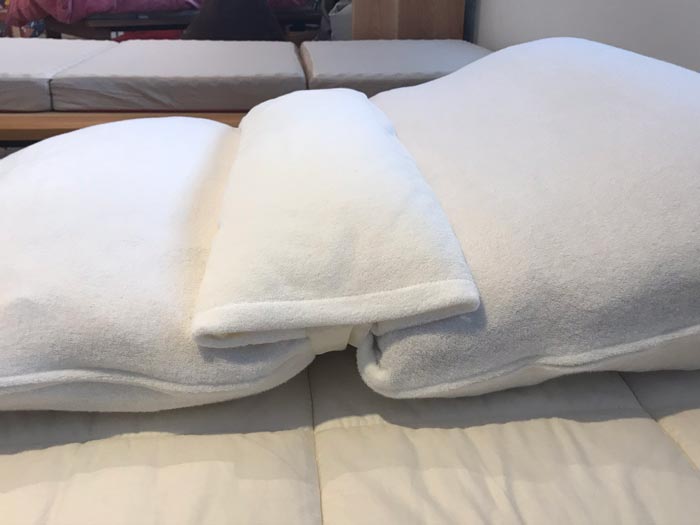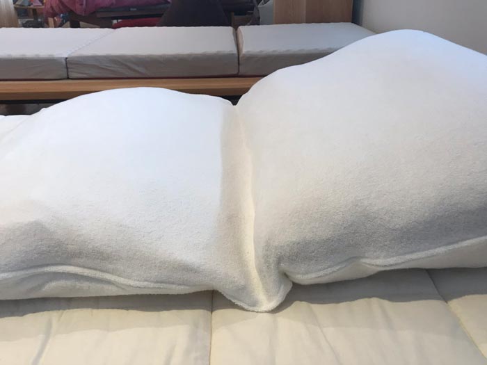 今日は、当社が逆流性食道炎などの疾患対策として製造しています オリジナル製品「傾斜寝姿勢サポート枕」にオプションとして、後付けできる補助枕とカバーを制作しました。