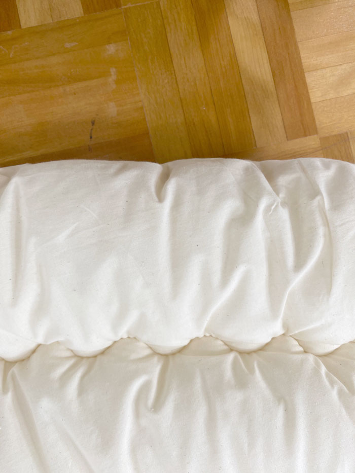 こたつ机に掛けたら、どんな風に見えるのか想像しながら作りました。