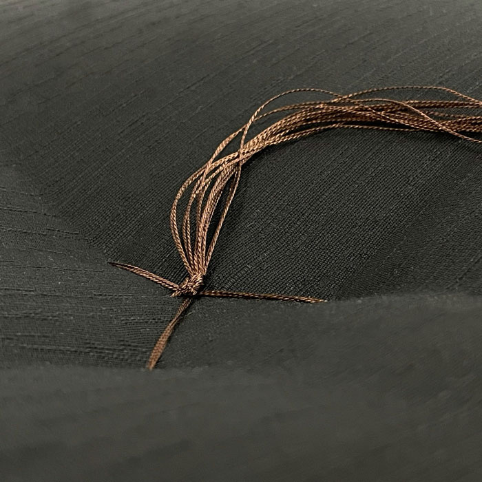 1枚に中の綿が2kgも入っているので、分厚く重たいので、中綴じの針が通りにくくて、大変でしたが、黒色の生地と焦茶色の綴じ糸で落ち着いた感じに仕上がりました。
