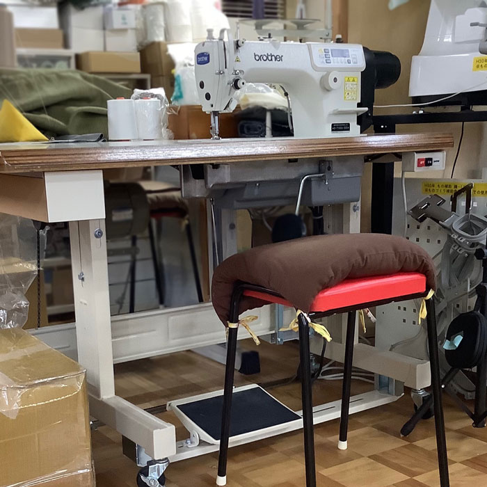 最近は「座・気まま」の縫製を行っていますが、ヒモ付けなどの細かな部分は技術が求められるな~と難しさを実感してます。