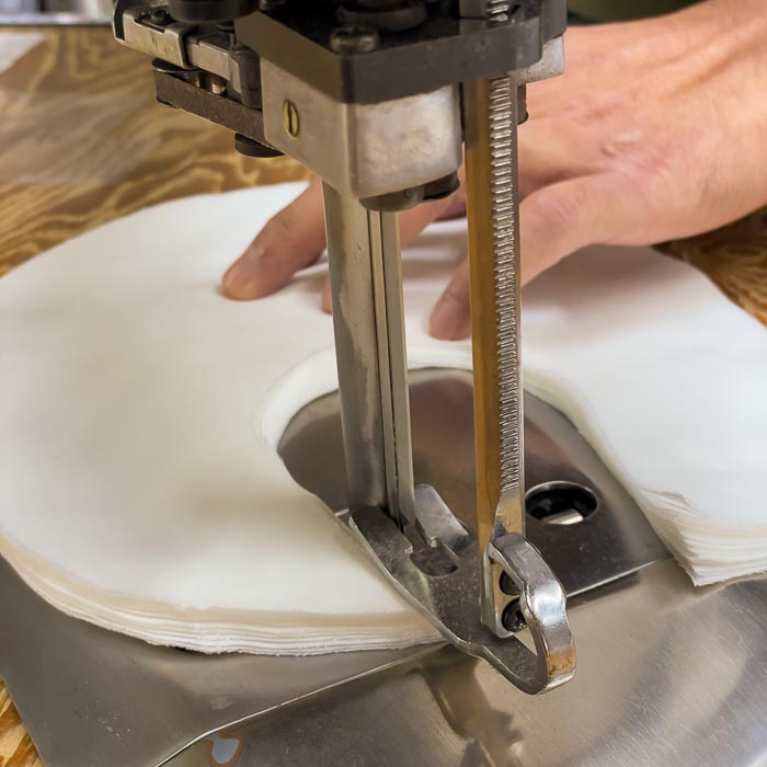 首周りのカーブが特に難しいです。扱いがまだ慣れていない裁断機なので慎重に作業しています。