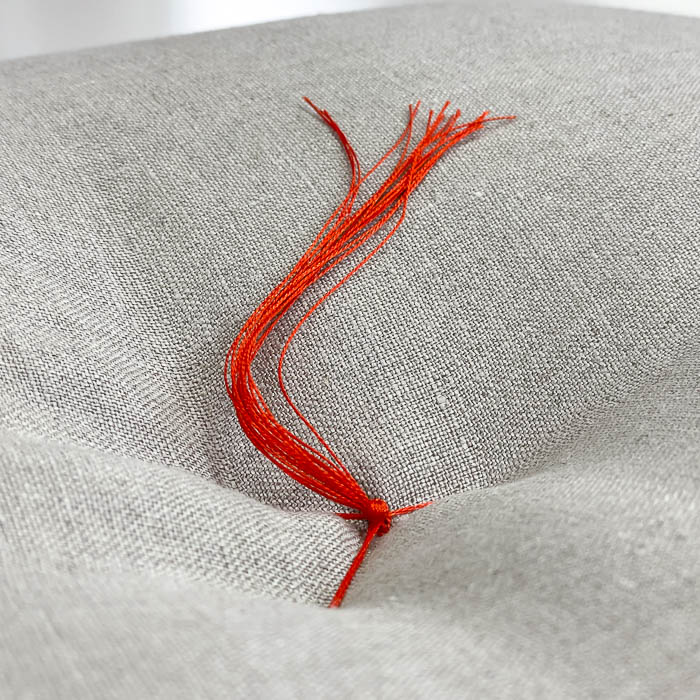 45cm四方と小さいサイズですが、四角にスミタテをして、赤色の綴じ糸で角房も付けて、可愛らしく仕上がりました。