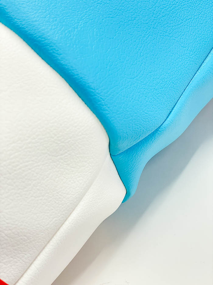 先日、海の家で使用していただけるtetra LUXEのレザータイプをサンプルで製作しました。レザータイプは通常のものと比べると、ファスナー部分がどうしてもすべりが悪くなり、製作する中で一番、苦労して仕上げました。夏らしいカラーで可愛く仕上がりとても嬉しかったです。