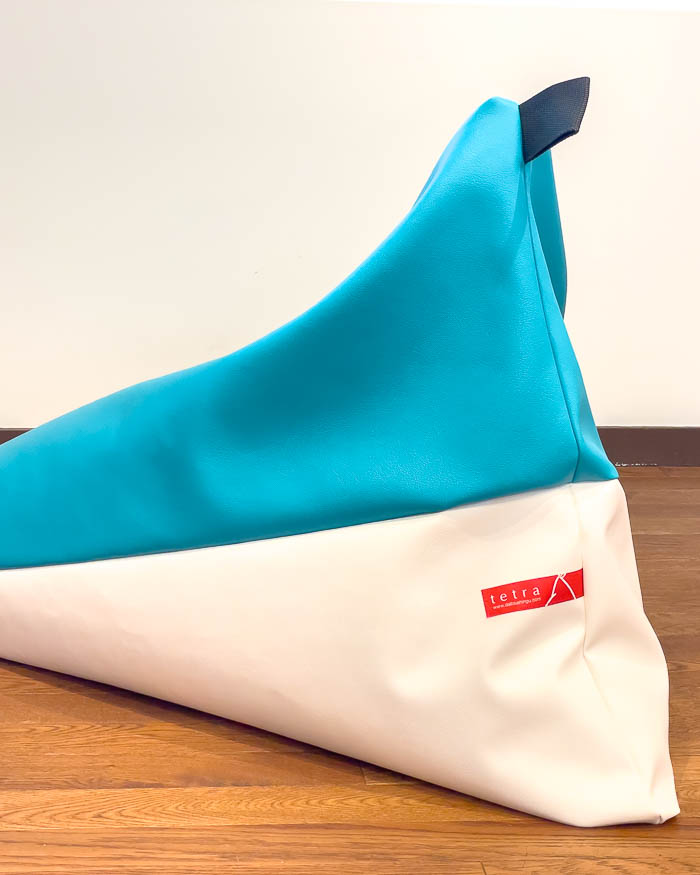 クッションtetra LUXEは三角錐の面を自在に変えることで椅子のように背もたれがしっかりと立った状態やゆったりともたれられる状態にもなります。さらにクッションを真っ直ぐに伸ばすと寝ころぶこともできます。