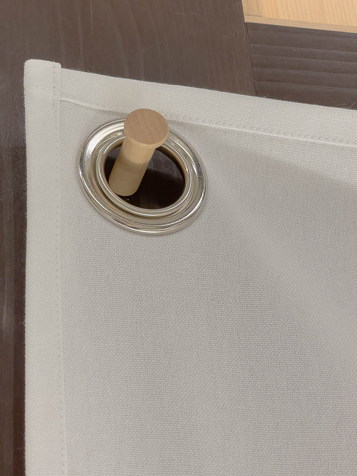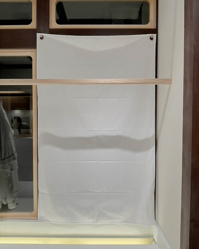 今回は新店舗(ねむりの蔵 四条烏丸店)用の幅99 × 高さ157cmの日除幕を裁断・縫製させていただきました。生地は11号帆布で分厚い生地です。四方三つ折り縫製で1cm巻きで仕立てました。今回も綺麗に仕上げることができて良かったです。