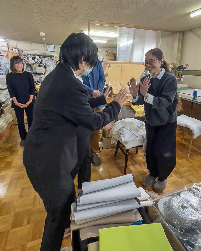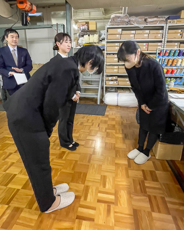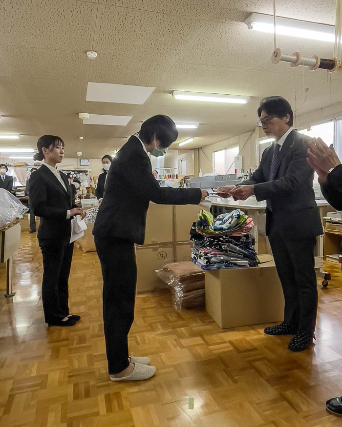 毎週初め全体朝礼の時のように、工場に全員が集まって大きな輪になって入社式を行いました。