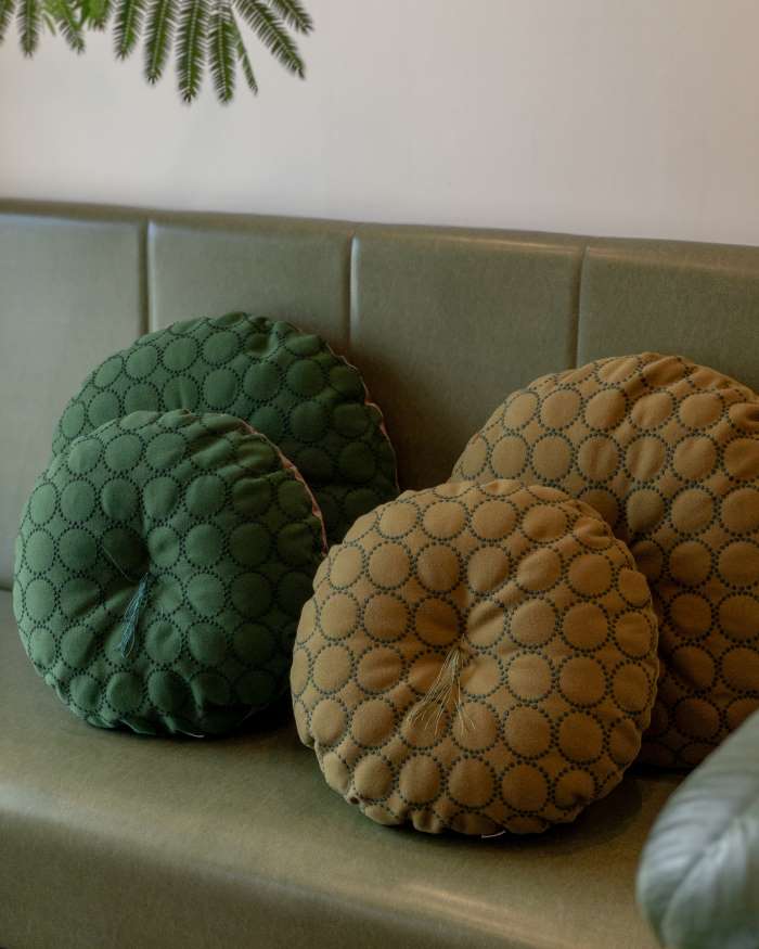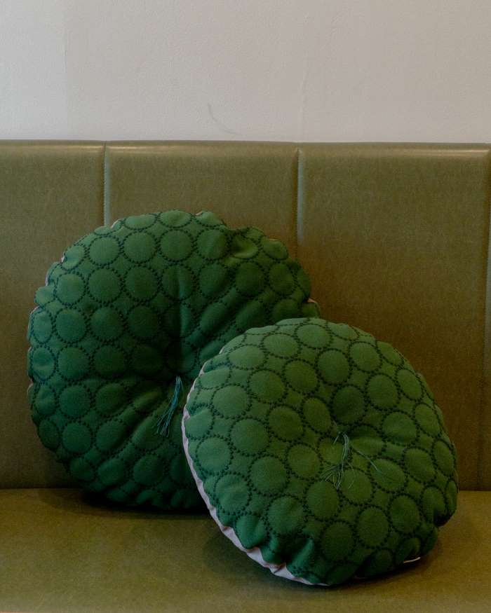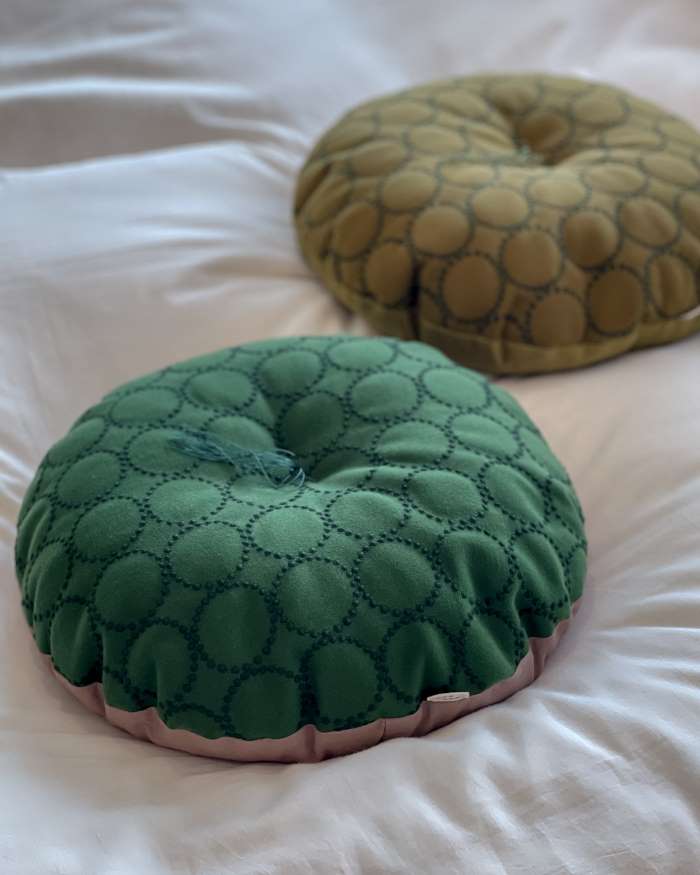 今回はタンバリン柄の新色の円形座布団をご紹介します。